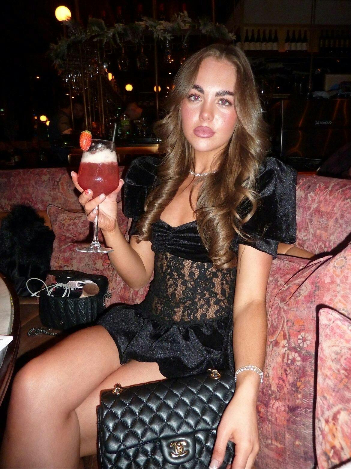 - Black Velvet Dress With Lace Detailing